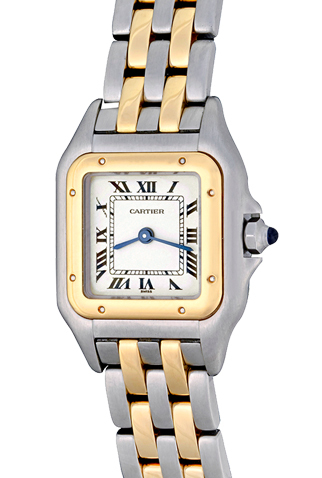 Stainless Steel and 18k Yellow Gold Two-Row Cartier bracelet with deployant clasp