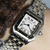 Stainless Steel square style case with 18k Yellow Gold bezel (21x30mm)