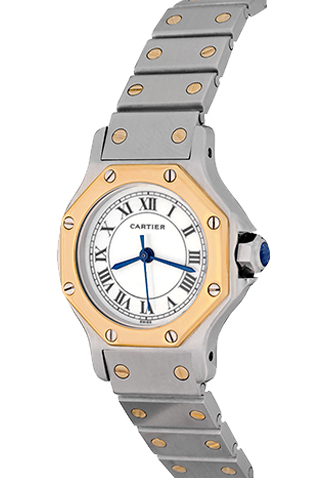 Stainless Steel case with 18k Yellow Gold octagon style bezel (25x30mm)