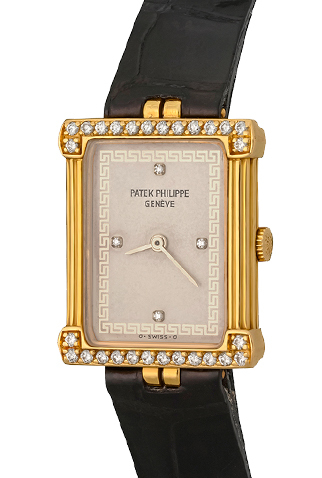 18k Yellow Gold rectangular style Patek Philippe case with diamond bezel (19x24mm)