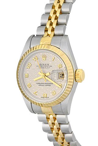 Stainless Steel case with 18k Yellow Gold fluted bezel (26mm dia.)