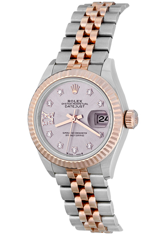 Silver Rose Dial with Rolex Diamond hour markers and Diamond Roman numeral at 9:00 position