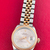 Stainless Steel case with 18k Rose Gold fluted bezel (28mm dia.)