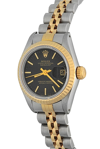 Stainless Steel case with 18k Yellow Gold fluted bezel (26mm dia.)