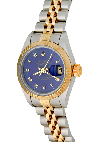 Stainless Steel case with 18k Yellow Gold fluted bezel (26mm dia.)