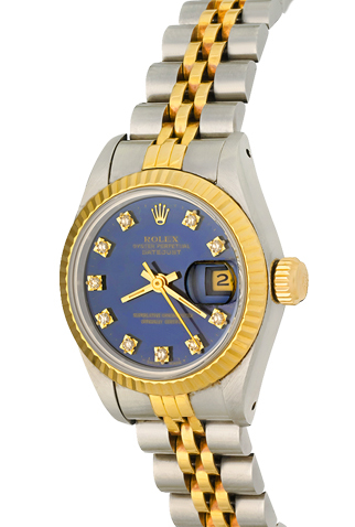 Stainless Steel case with 18k Yellow Gold fluted bezel (26mm dia.)