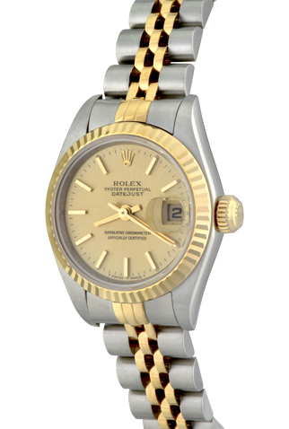 Stainless Steel case with 18k Yellow Gold fluted bezel (26mm dia.)