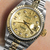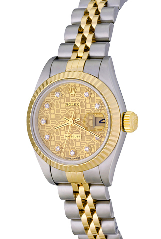 Stainless Steel case with 18k Yellow Gold fluted bezel (26mm dia.)