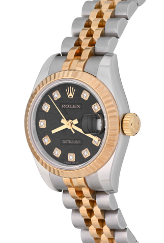 Stainless Steel case with 18k Yellow Gold fluted bezel (26mm dia.)