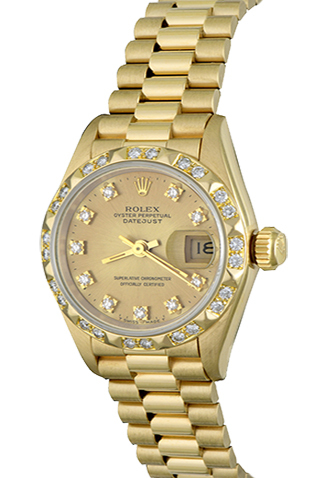 18k Yellow Gold case w/Rolex Pyramid Diamond Bezel (26mm dia.)