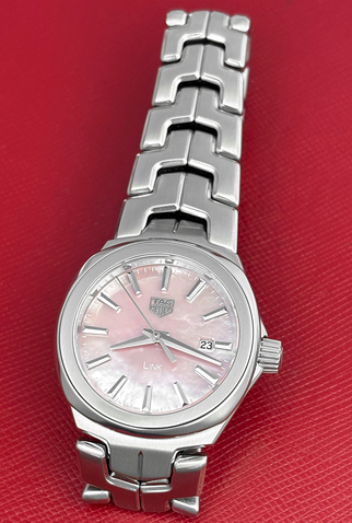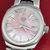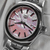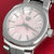 Pink Mother of pearl dial with polished steel hour markers