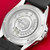 Stainless Steel round waterproof style case with black bezel and exposition back to view movement (43mm dia.). Water Resistant to 100 Meters - 325 Feet