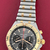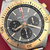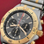 Stainless Steel case with uni-directional rotating 18k Rose Gold bezel chronograph pushers and winding / setting crown. Exposition back to view movement (42mm dia.). Water Resistant to 200 Meters - 660 Feet