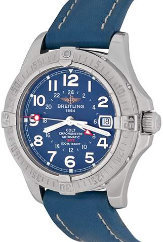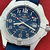 Blue leather saddle-stitched breitling strap with Stainless Steel Breitling buckle