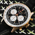 Black Dial, silver sub dials with Rose Gold hour markers and inner Slide Rule rotating bezel. Date window at 6:00 position. The return of the AOPA wings to Navitimer dials at the 12:00 position.