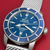 Stainless Steel case with blue ceramic rotating bezel (46mm dia.). Water Resistant to 200 Meters - 660 Feet