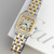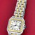 Stainless Steel square style case with 18k Yellow Gold bezel (27x37)