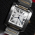Stainless Steel square style case and 18k yellow gold setting crown with blue sapphire cabachon (28x34mm)