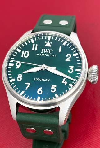 Green IWC rubber strap with Stainless Steel I.W.C. deployant clasp