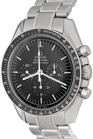 Stainless Steel case signed on case back signed "Flight-Qualified By NASA For All Manned Space Missions First Watch Worn On The Moon" (42mm dia.). Water resistant 50 meters / 165 feet.