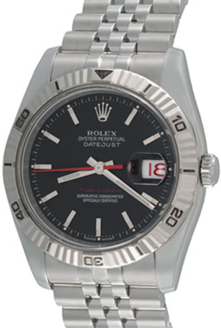 Stainless Steel case with 18k White Gold Turn-O-Graph bezel (36mm dia.)