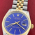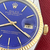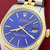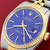 Bright blue Dial with yellow gold hour markers