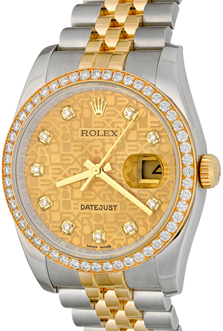 Stainless Steel case with 18k Yellow Gold Rolex Diamond bezel (36mm dia.)