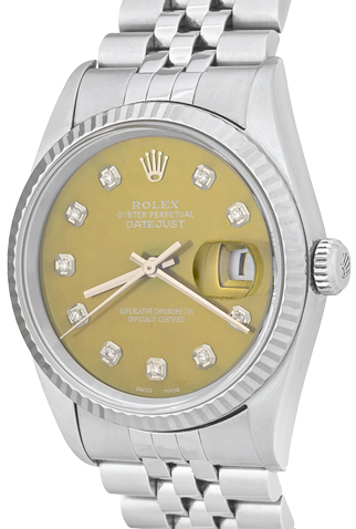 Stainless Steel case with 18k white gold custom Diamond bezel (36mm dia.)