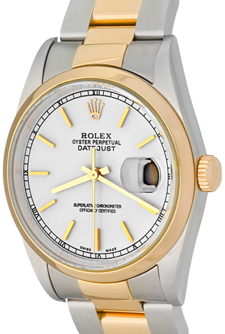 Stainless Steel case with 18k Yellow Gold smooth bezel (36mm dia.)