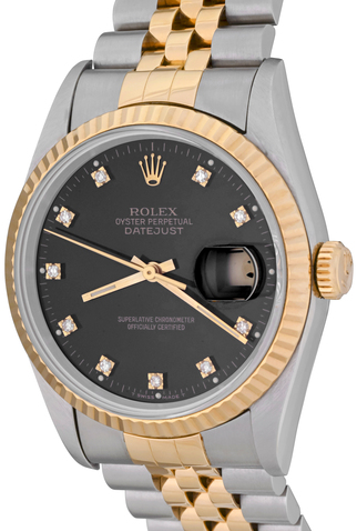 Stainless Steel case with 18k Yellow Gold fluted bezel (36mm dia.)