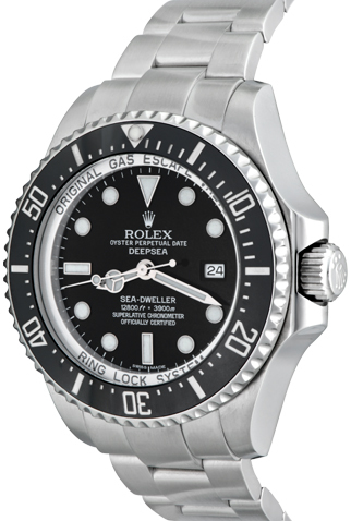 Stainless Steel case with ceramic bezel; original "Gas Escape Valve" (44mm dia.). Water Resistant to 12,800 Feet - 3900 Meters