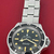 Black Dial with luminous hour markers. "Feet First". Note original crystal shows aging marks