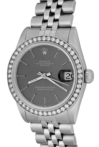 Stainless Steel case with 18k White Gold 1.1 custom Diamond bezel (31mm dia.)