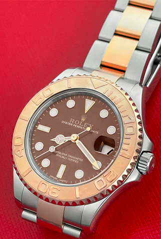 Stainless Steel with 18k Rose Gold bezel (37mm dia.). Water-Resiatnt to 100 Meters - 331 Feet